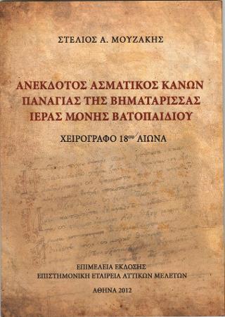 Ανέκδοτος Ασματικός Κανών Παναγίας Βηματάρισσας Ιεράς Μονής Βατοπαιδίου