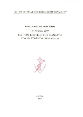 Ανακοινώσεις ημερίδος (18 Μαρτίου 2009) για την επέτειο θανάτου του Ελευθερίου Βενιζέλου