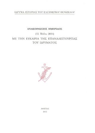Ανακοινώσεις ημερίδος (15 Μαίου 2014) με την ευκαιρία της επαναλειτουργίας του Ιδρύματος
